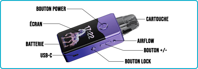 - Puissance et polyvalence : module jusqu’à 120 W pour couvrir DL puissant et vape plus restreinte.