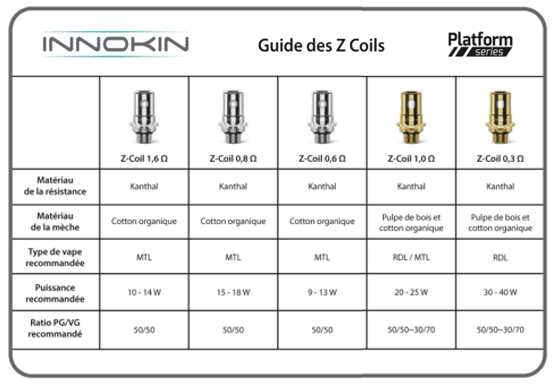 • Marque : Innokin (Z Coil / Zenith Series).